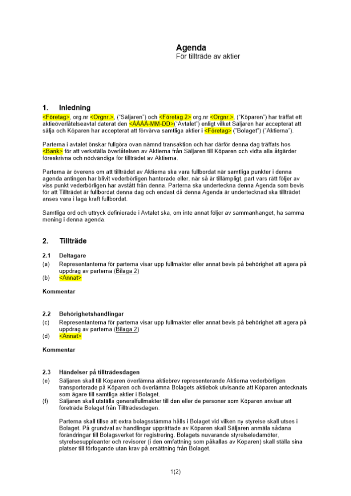 Produkter taggade med 'Tillträde av aktier aktietillträde tillträde aktier överlåtelse av aktier aktieköp'