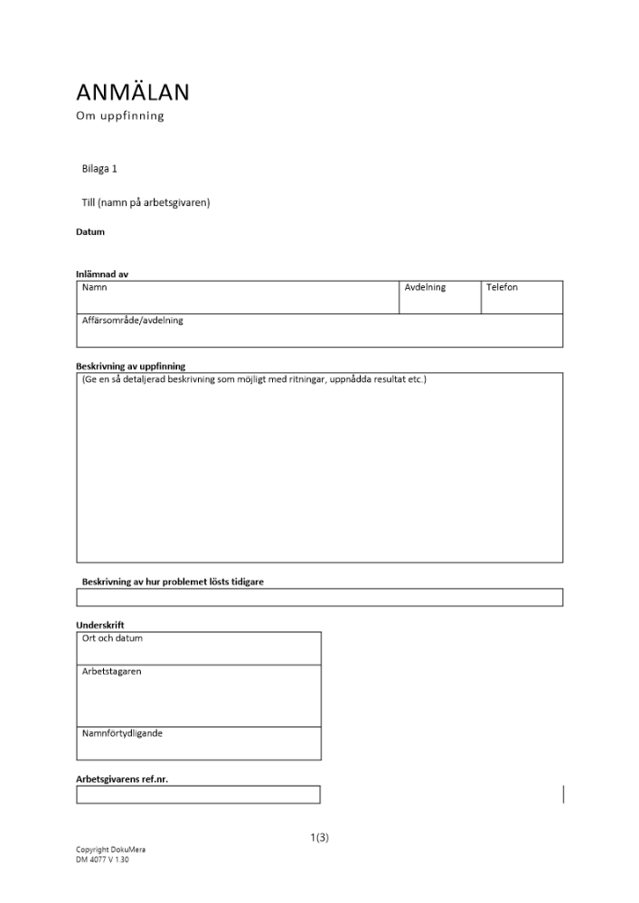 Produkter taggade med 'Anmälan arbetstagare uppfinning kategori underrätta informera patent'
