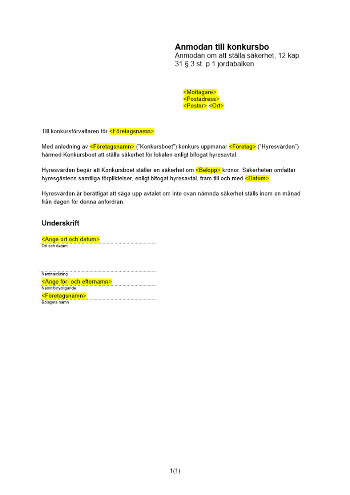 • Konkursanmaning och konkursansökan