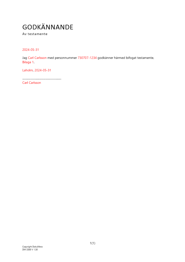 Produkter taggade med 'Godkännande testamente rent bouppteckning arv'