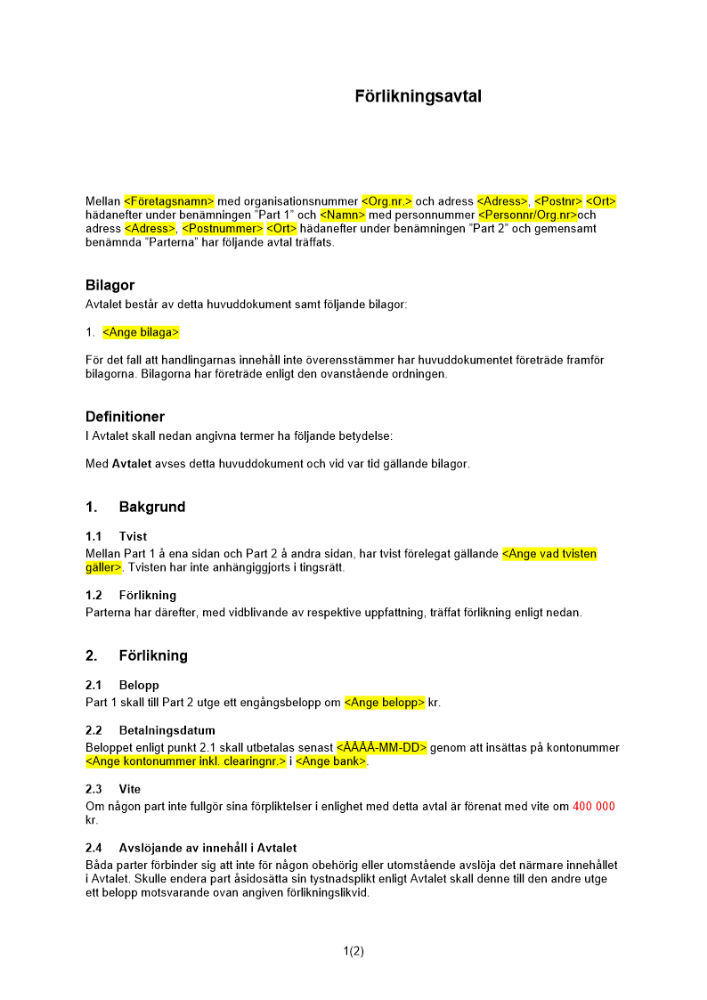 Produkter taggade med 'förlikning förlikningsavtal tvist tvistelösning avtal domstol utom rätta'