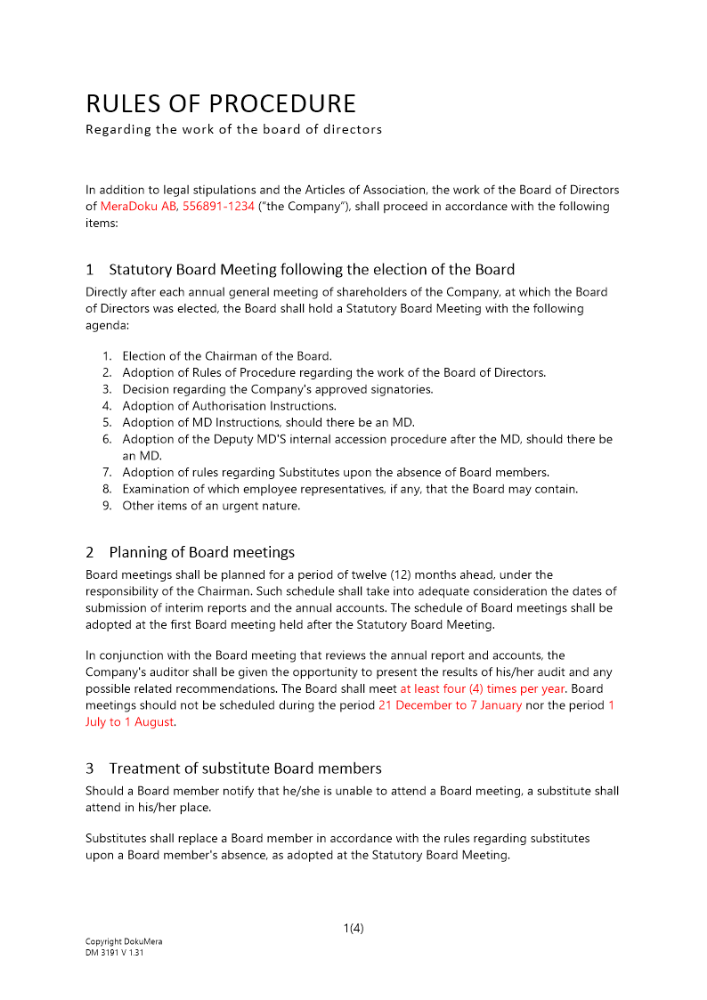 Produkter taggade med 'rules procedure ägardirektiv Arbetsordning styrelsens arbete sammanträda styrelseledamot skriftliga styrelsen aktiebolag'
