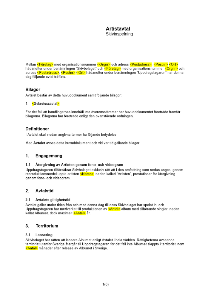 Produkter taggade med 'Artistavtal artist avtal skivinspelning'