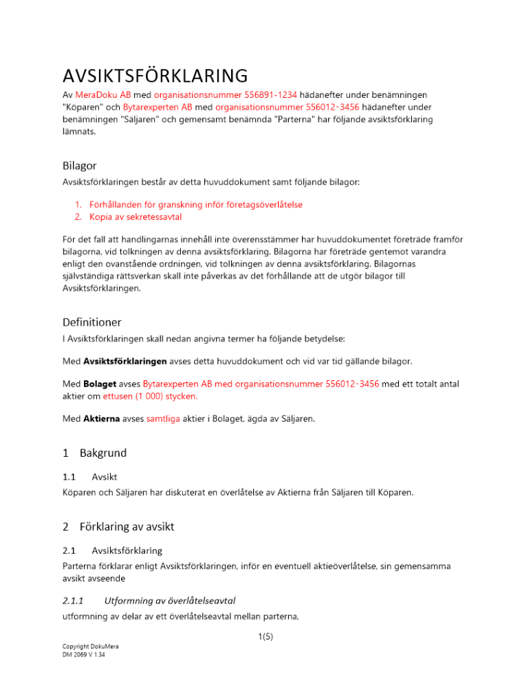 Produkter taggade med 'letter of intent företagsavtal ägarbyte företagsförsäljning Avsiktsförklaring företagsöverlåtelse aktier letter of intent avtalsparter förhandlingar definitivt'