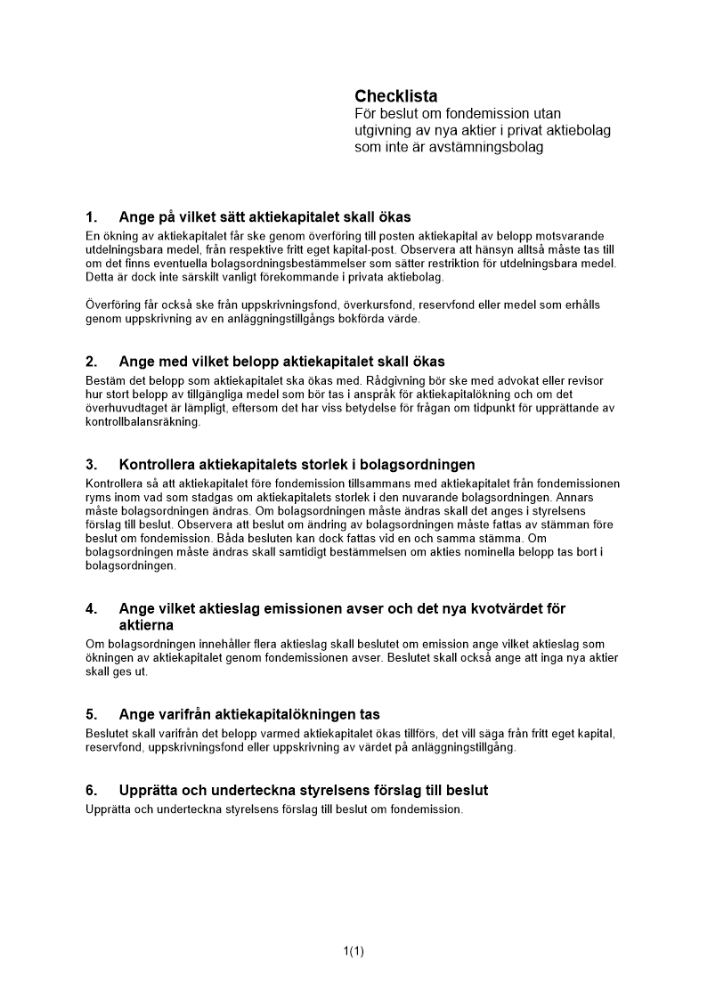 Produkter taggade med 'Checklista fondemission privat aktiebolag privat bolag'