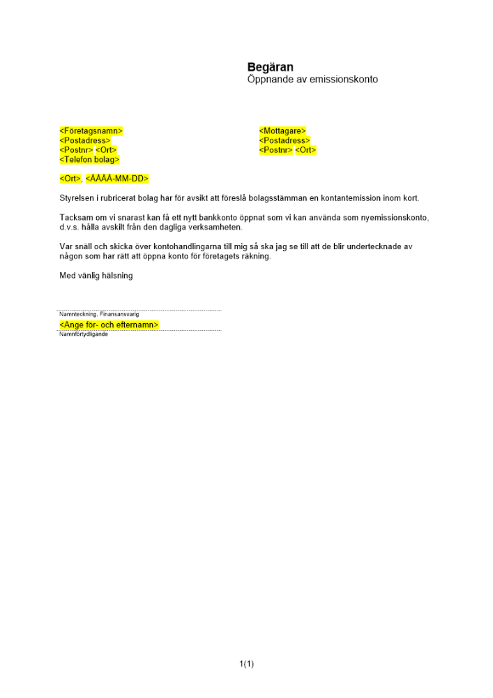 Produkter taggade med 'finansiering kapitaltillskott nyfinansiering kapitalisering Begäran öppnande emissionskonto privat AB kreditinstitut avstämningsbolag nyemission kontantemission'