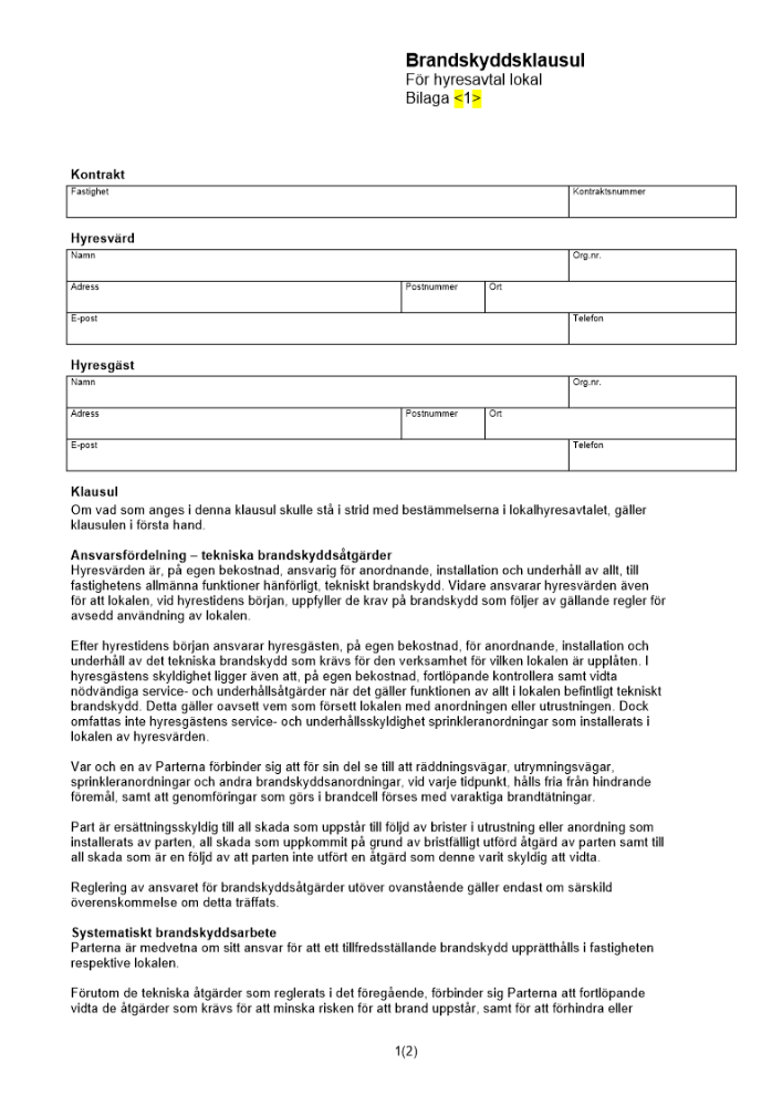 Produkter taggade med 'brandskyddsklausul hyresavtal lokal brandskydd brandskyddsåtgärder brandskyddsarbete'