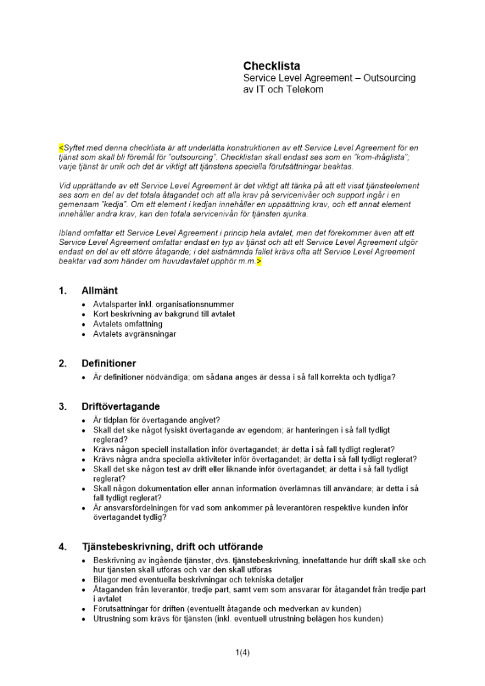 Produkter taggade med 'Checklista Service Level Agreement Outsourcing IT Telekom SLA Service Level Management.SLM'