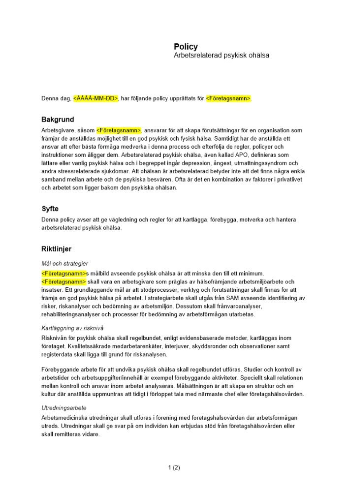 • Företagsmallar