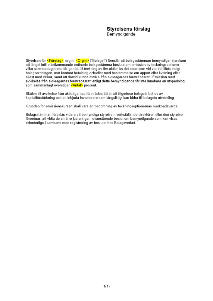 Produkter taggade med 'Emission av teckningsoptioner teckningsoptioner emission aktier nyemission aktieägare delägare andel'