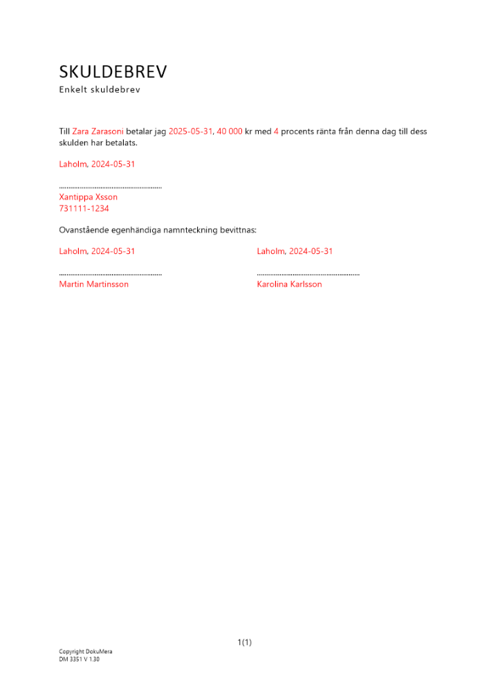 Produkter taggade med 'skuldeförbindelse skuldförbindelse avbetalningsplan Enkelt skuldebrev privatperson ränta skuld'