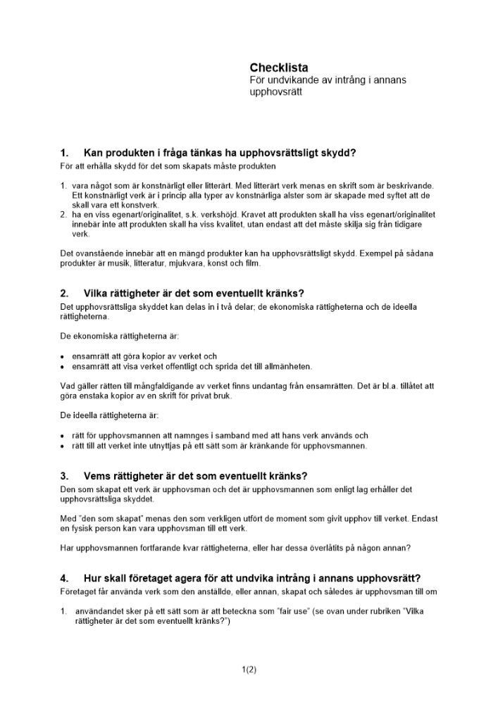 Produkter taggade med 'immateriella intellectual property rättigheter Upphovsrättsintrång checklista upphovsrättsligt skydd verkshöjd intrång i upphovsrätt undvika copyright Upphovsrättsintrång checklista upphovsrättsligt skydd verkshöjd intrång i upphovsrätt undvika copyri'