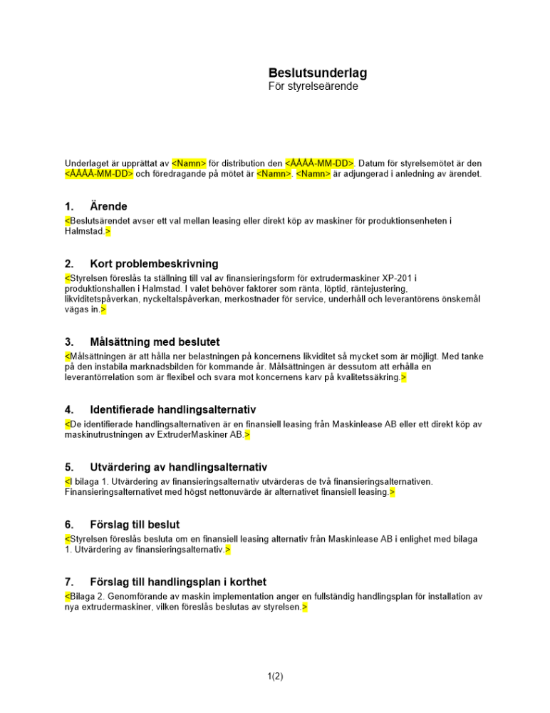 Produkter taggade med 'Beslutsunderlag styrelseärende aktiebolag underlag handlingsalternativ beslutet handlingsplan'