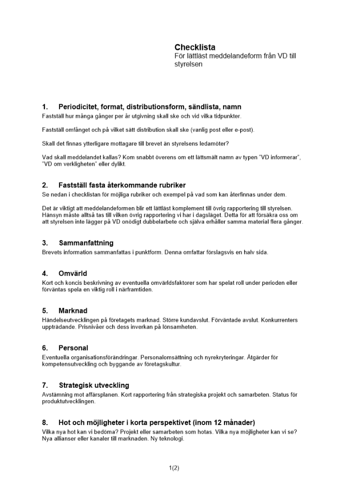 Produkter taggade med 'Checklista lättläst meddelandeform VD styrelsen rapportering komplement aktiebolag distributionslist'