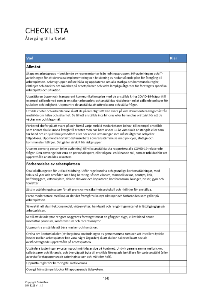 Produkter taggade med 'Denna mall från DokuMera hjälper dig som arbetsgivare att planera för arbetstagarnas återgång till arbetsplatsen efter coronapandemin.'