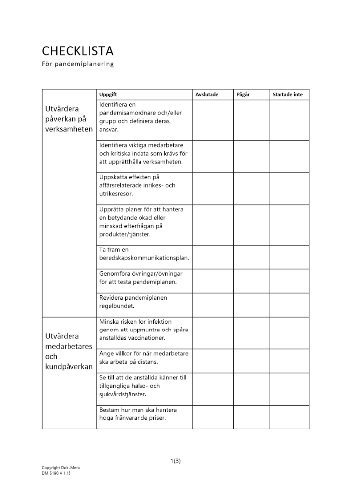 • Arbetsordning, arbetsfördelning och instruktioner