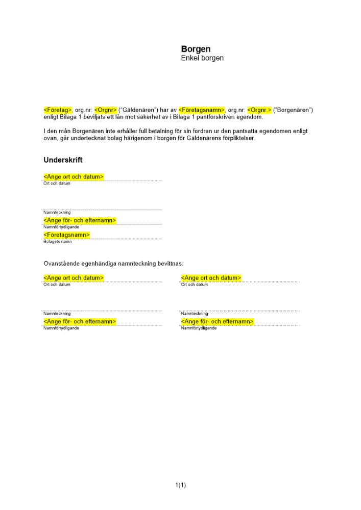 Produkter taggade med 'Fyllnadsborgen företag Enkel borgen fordran fordringen borgenären gäldenären borgensmannen primär pa'