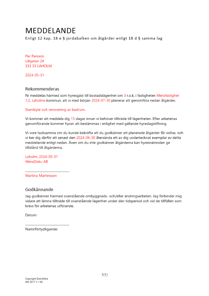 Produkter taggade med 'Meddelande upplysning renovering standardhöjning lägenhet bostad hyresrätt ombyggnad'