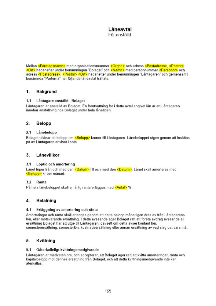Produkter taggade med 'Låneavtal lån anställd företaget avtal personal'