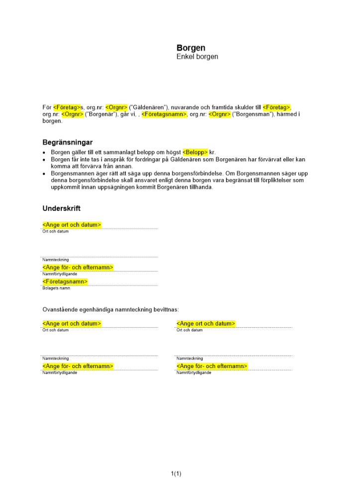 Produkter taggade med 'Enkel borgen borgensförbindelse borgensman borgenär begränsningar gäldenär skuld fordring generell'