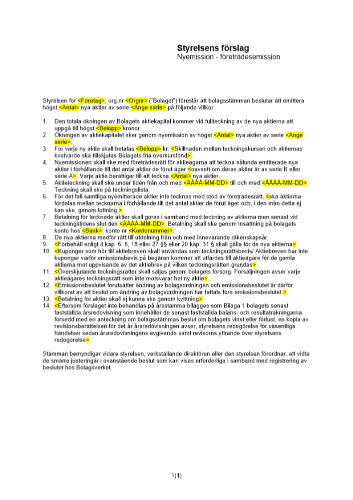 Produkter taggade med 'Nyemission styrelsen förslag stämman publikt avstämningsbolag företrädesemission företräde emission'