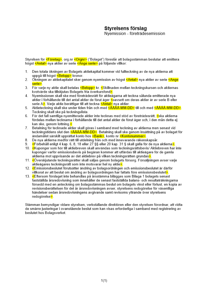 Produkter taggade med 'Nyemission styrelsen privat förslag stämman företrädesemission företräde emission aktier ägare aktie'