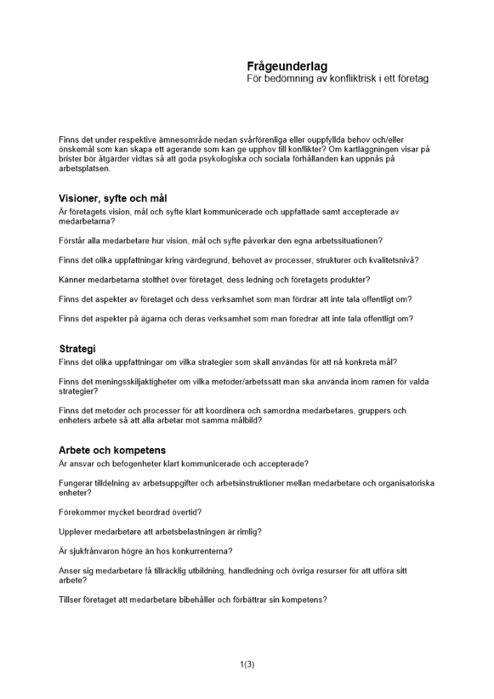 Produkter taggade med 'frågeunderlag frågebatteri konflikt konfliktrisk riskbedömning'