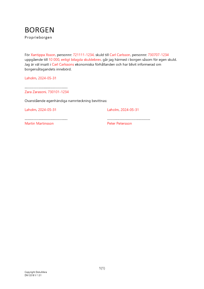 Produkter taggade med 'Proprieborgen borgen borgensman borgenär gäldenär skuld'