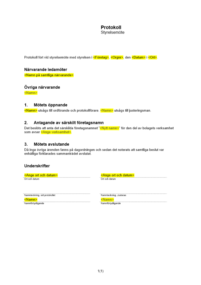 Produkter taggade med 'Protokoll styrelsemöte bifirma beslut företagsnamn registrera'