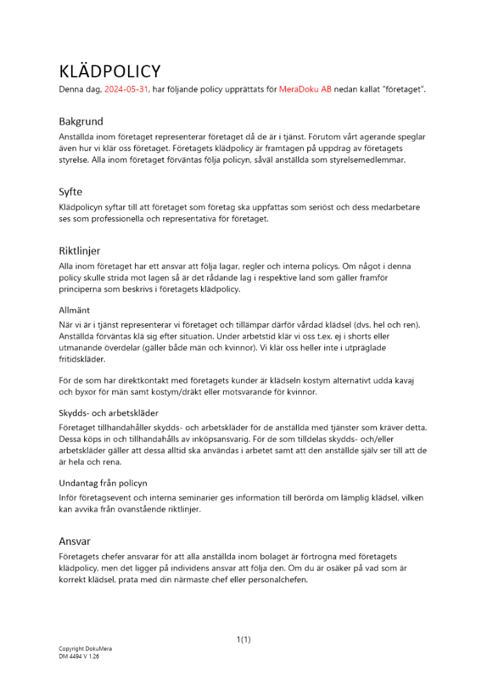 Produkter taggade med 'klädpolicy klädkod kläd kläder policy'