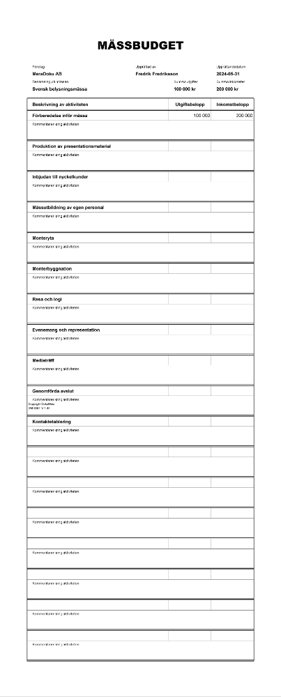 Produkter taggade med 'mässa mässor årsbudget Mässbudget mässaktivitetsbudget mässdeltagande utgifter inkomster Marknadsföringskostnader'