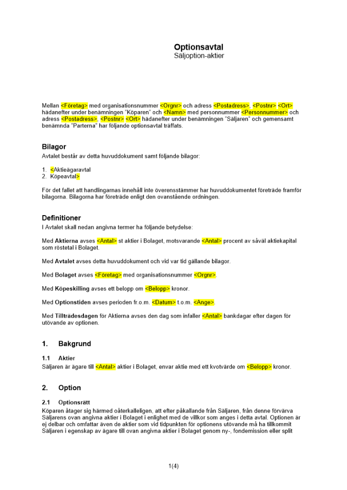 Produkter taggade med 'Säljoption optionsavtal aktier sälja aktier put option put'